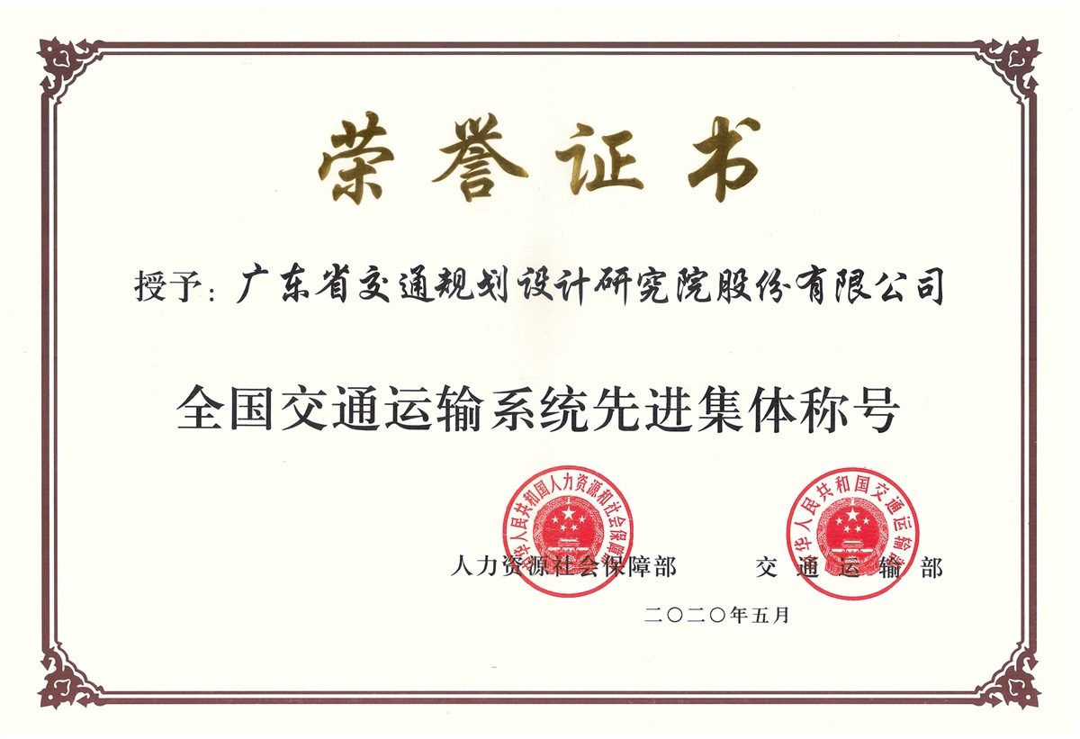 今年五月,人力资源和社会保障部、交通运输部组织开展了“全国交通运输系统先进集体评选表彰活动”。我公司经过层层遴选,凭借在思想政治建设、精神文明建设、企业改革创新、业务开拓进取、市场诚信建设等方面的突出表现,被授予了“全国交通运输系统先进集体”荣誉称号。