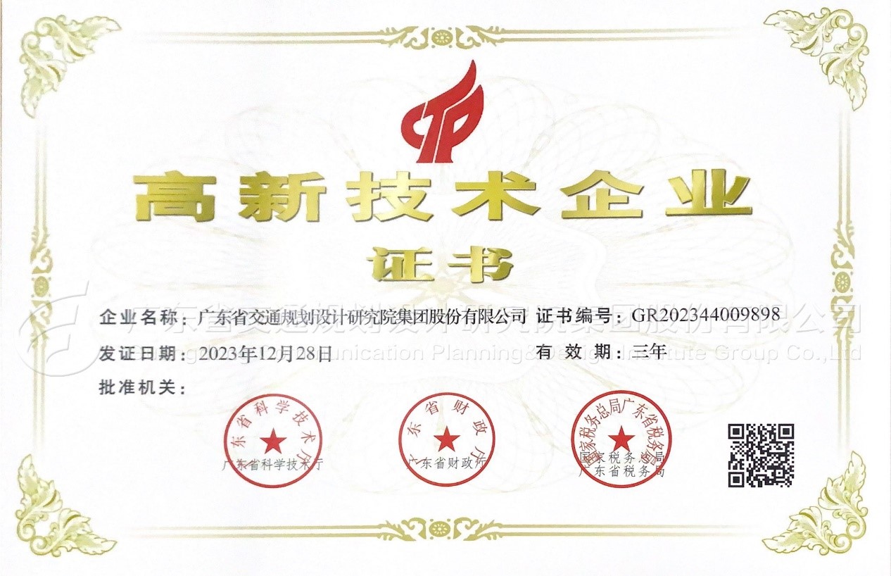 公司自2008年首次认定为国家高新技术企业,每三年顺利延续认定至今。一直以来,我们坚持以创新驱动发展,不断完善科研平台建设,强化企业核心竞争力。目前,公司设有国家博士后科研工作站、广东省工程技术研究中心(下设高性能土木工程结构联合创新研究中心)、广东省企业技术中心、广东省及环粤地区交通规划与仿真实验室、梁立农创新工作室、数字化技术研究院、智慧交通创新与应用研究中心、交通大数据研究中心等科研创新平台,在开展工程技术攻坚的同时,积极进行BIMGIS5G、大数据等工程数字化、智慧化技术的研究和应用,不断探索新理念、新技术、新模式。