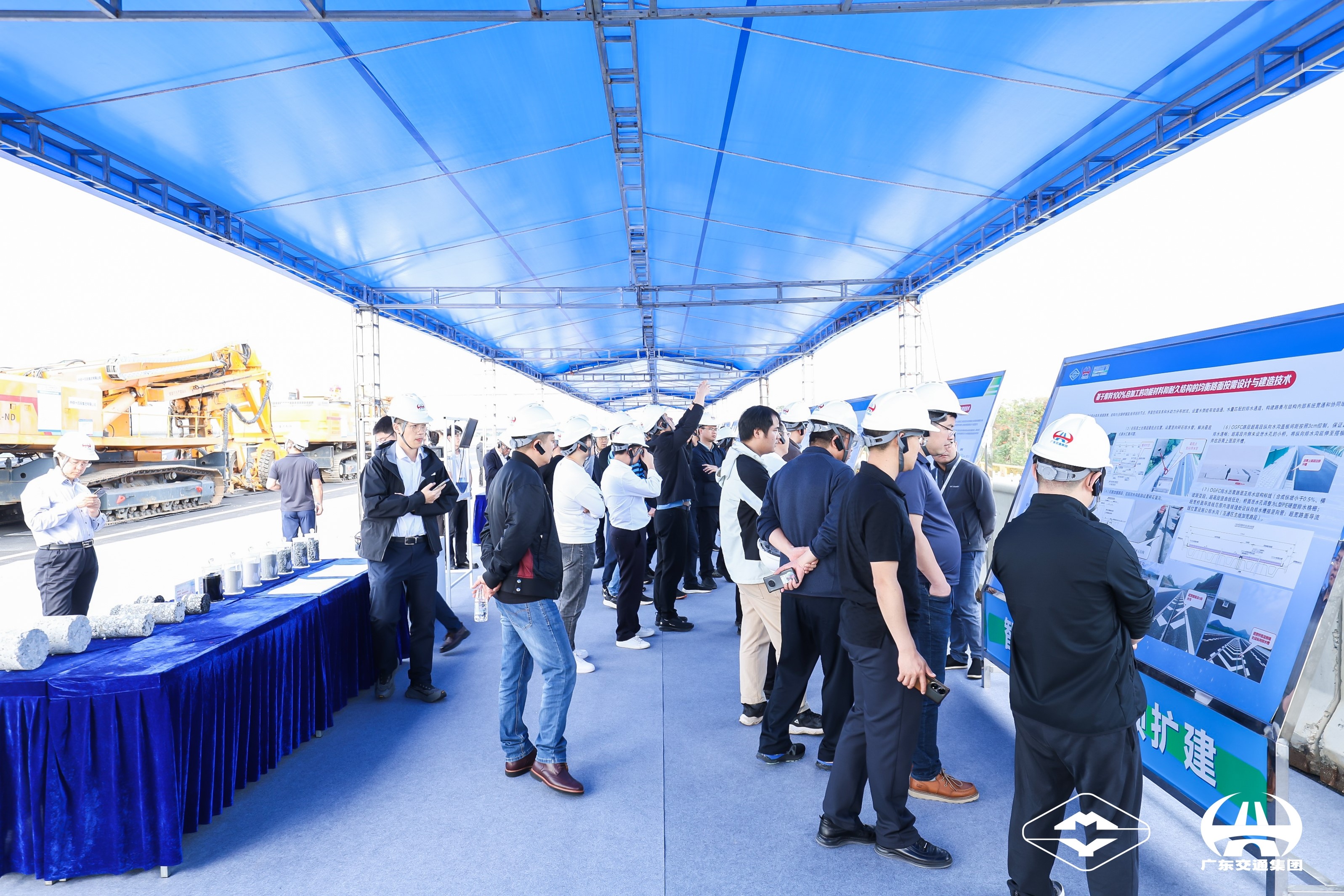 3月20日下午,与会代表们前往深汕西高速公路改扩建工程现场,参观了桩梁一体化智能建造装备、双T梁工业化制造、轻型全高度系列装配化挡墙和单洞四车道钻爆隧道全过程机械化建造技术等内容,进一步了解了项目技术创新和先进经验。